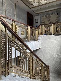 別墅銅藝樓梯-銅樓梯欄桿色彩變化:銅欄桿會隨著時間的推移逐漸氧化,形成獨特的綠色或青銅色,增添了古樸 ..